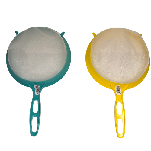 Su diseño en plástico y malla plastica garantiza que la comida se mantenga en su lugar mientras se escurre el líquido, lo que lo hace ideal para escurrir verduras frescas o frutas delicadas sin dañarlas.
